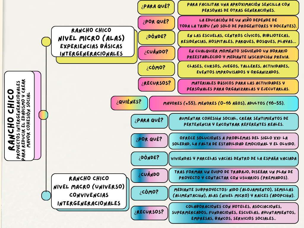 The Rancho Chico macroproject pretends to be an Intergenerational Home-Schools Chain